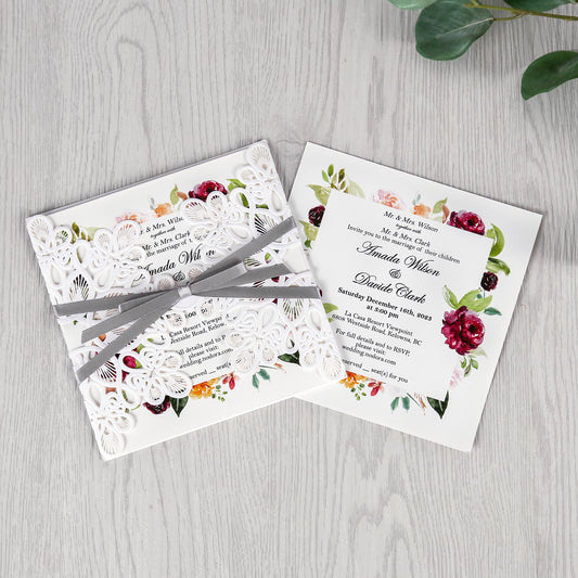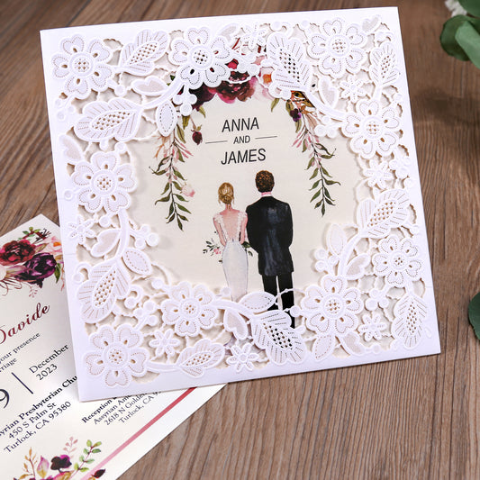 Ivory Square Hollow Flora Wedding Invitation