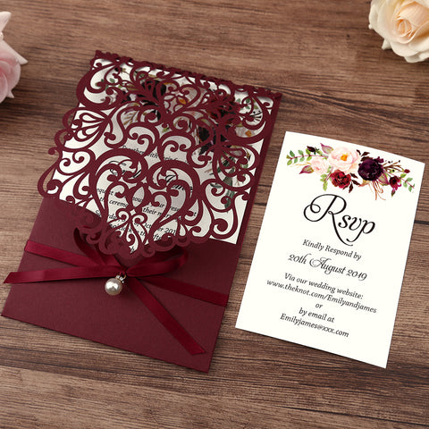 The details are the most important part of your wedding invitations. Keep them simple and stick to the basics! You’ll need to include the date, time, location and address. In many formal invitations, couples will spell out the date and time.