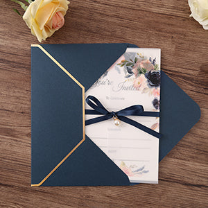Laser Cut Wedding Invitations with Envelopes Navy Blue, Personalized Pearlized inserts Invitation Cards for Wedding, Invitations with Envelopes