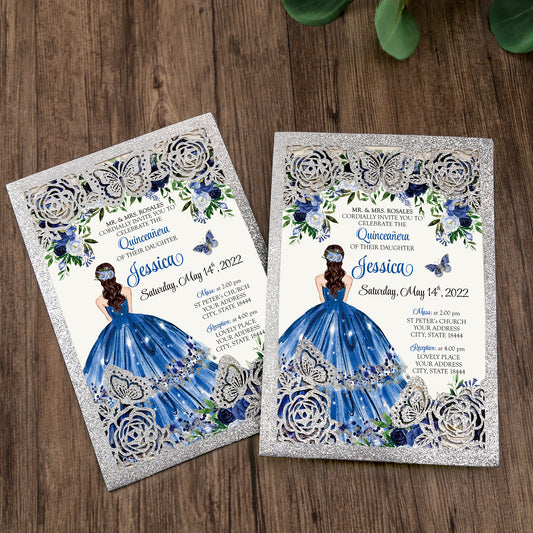 Silver with Hollow Butterflies Invitations Greeting Cards For Quinceanera