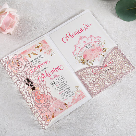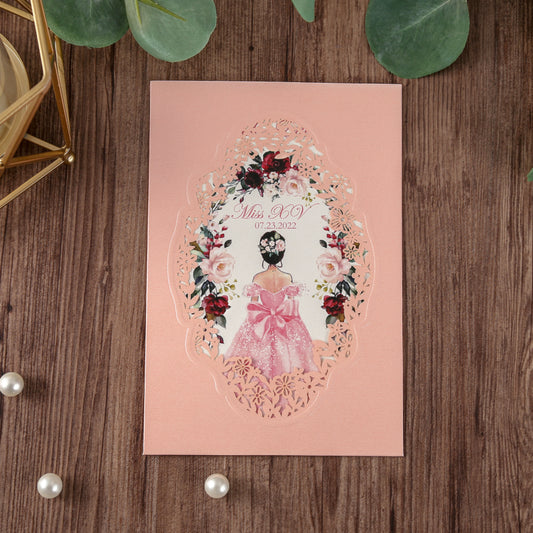 Pocket Pink Wedding Invitations Greeting Cards For Quinceanera