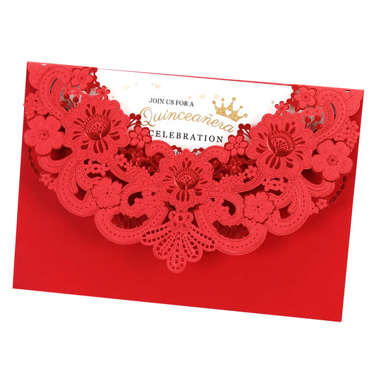 DORIS HOME Red Floral Laser cut invitation cards for Quinceanera