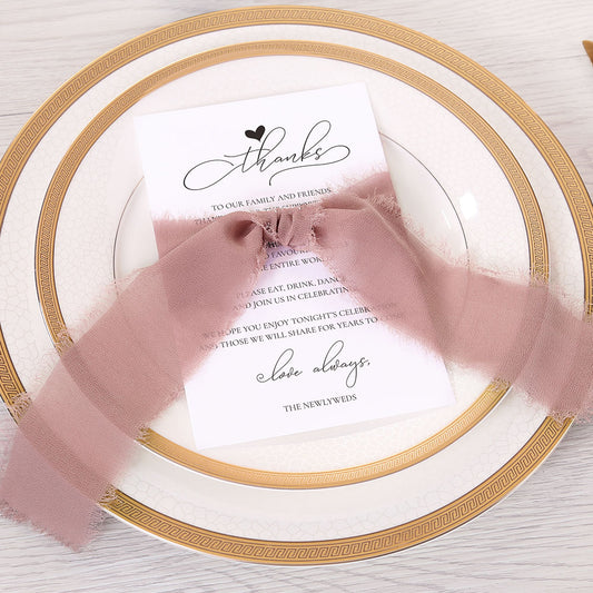 Thank You Place Setting Cards With Mauve Chiffon Ribbon
