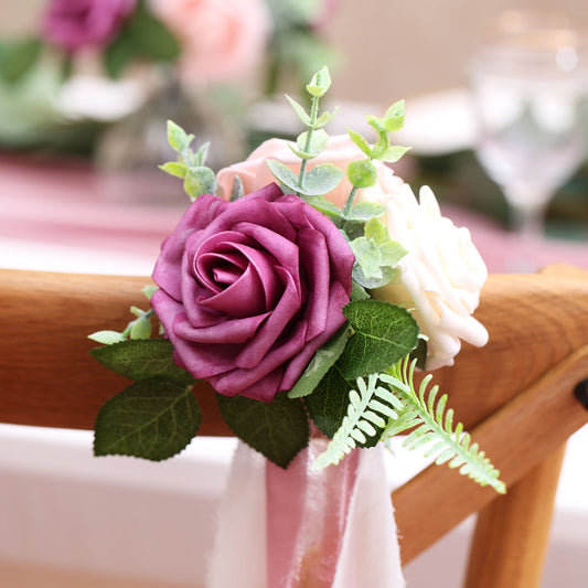 Wedding Aisle Decorations Burgundy Pew Flowers Set of 10 for Wedding Ceremony Party Chair Decor with Artificial Flowers Eucalyptus and Ribbons