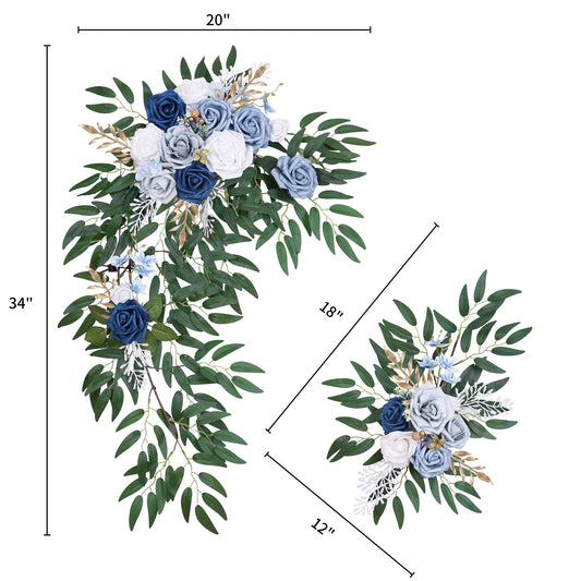 DORIS HOME Artificial Flower Swag Blue and White for Wedding Ceremony Sign Floral Decoration - Pack of 2