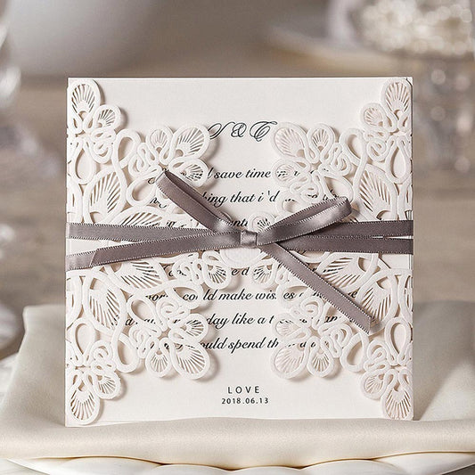 Ivory White Bowknot Lace Wedding Invitations,Invitations