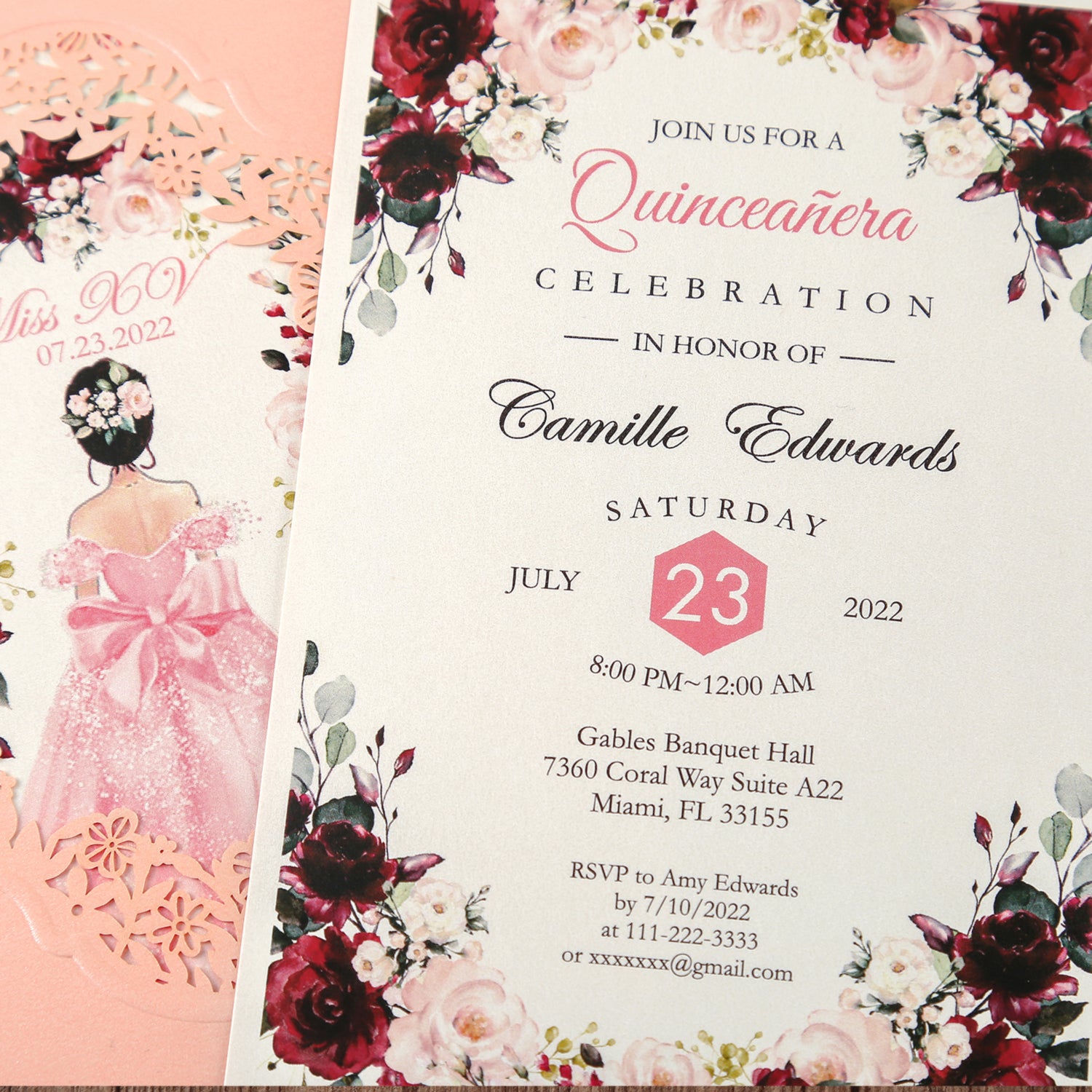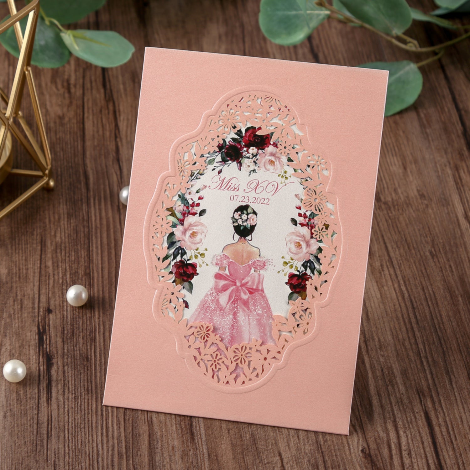 Pocket Pink Wedding Invitations Greeting Cards For Quinceanera