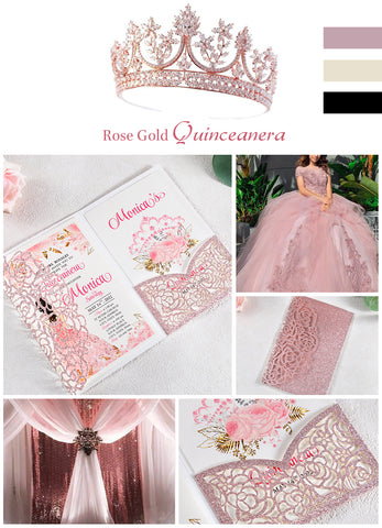 DreamBuilt 4.7 x7 inch Rose Gold Glitter Laser Cut Hollow Rose Quinceanera Invitations Cards with Glitter Pockets and Envelopes for Quincenera Birthday Party