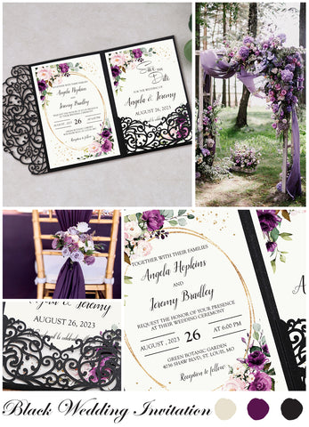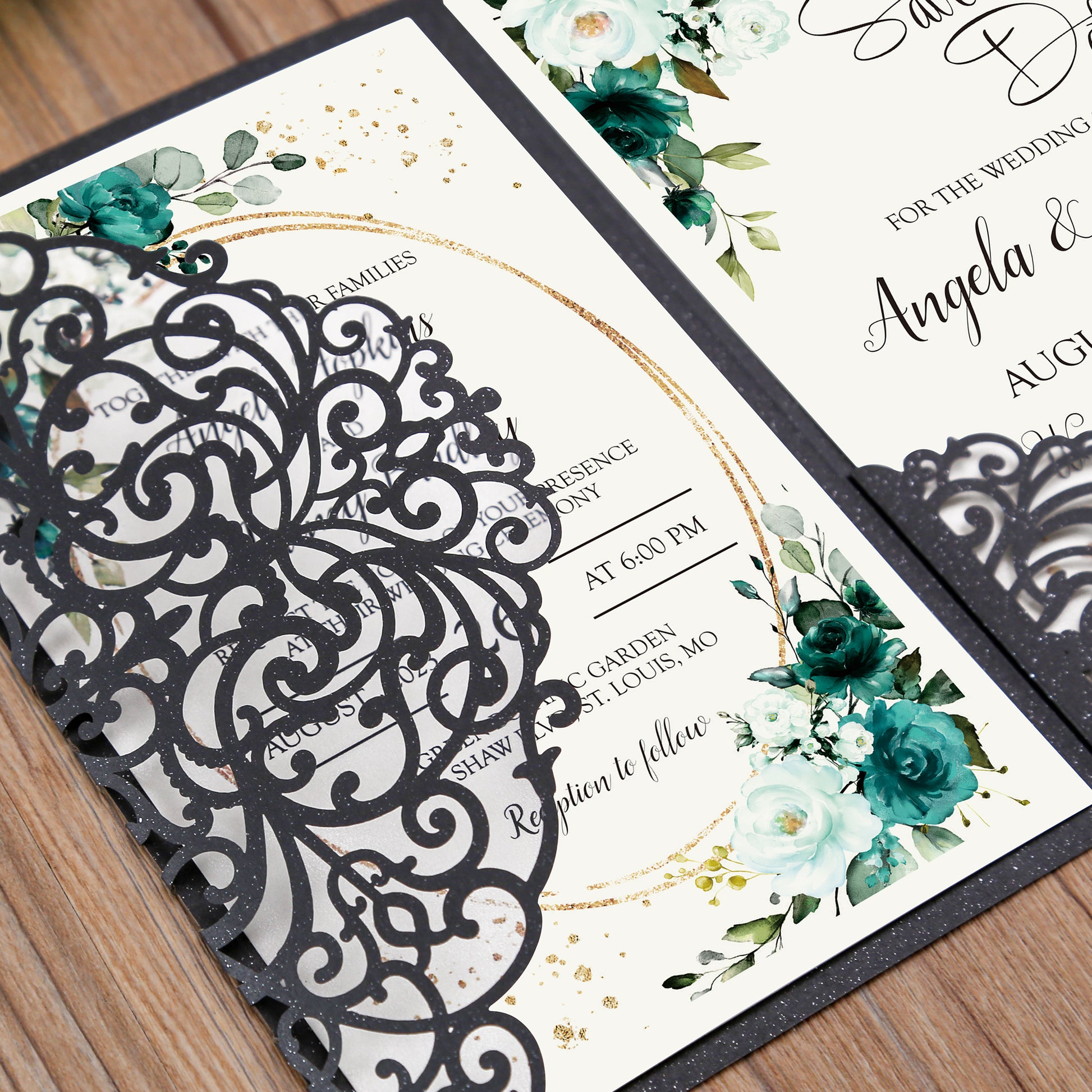 4.7 x7 inch Black Laser Cut Hollow Rose Wedding Invitations Cards with Envelopes for Wedding Party