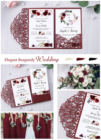 4.7 x7 inch Burgundy Laser Cut Hollow Rose Wedding Invitations Cards with Envelopes for Wedding Party