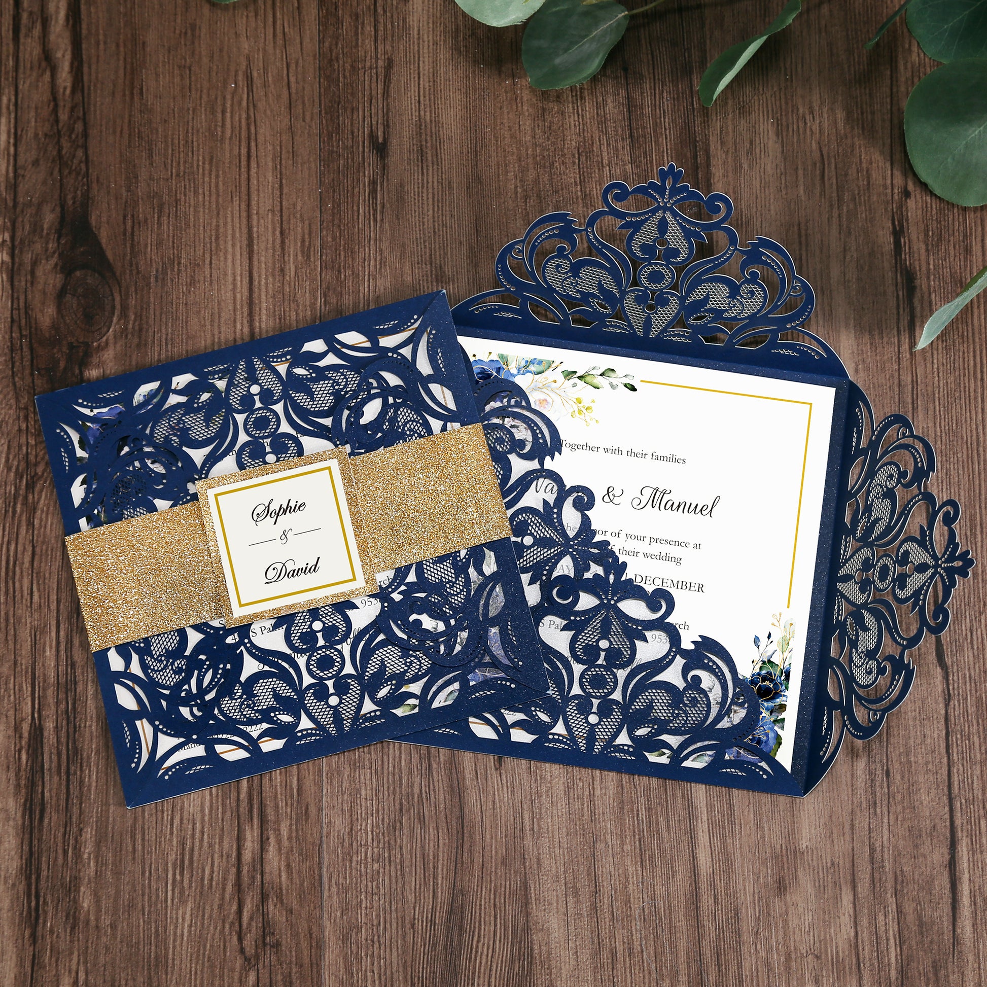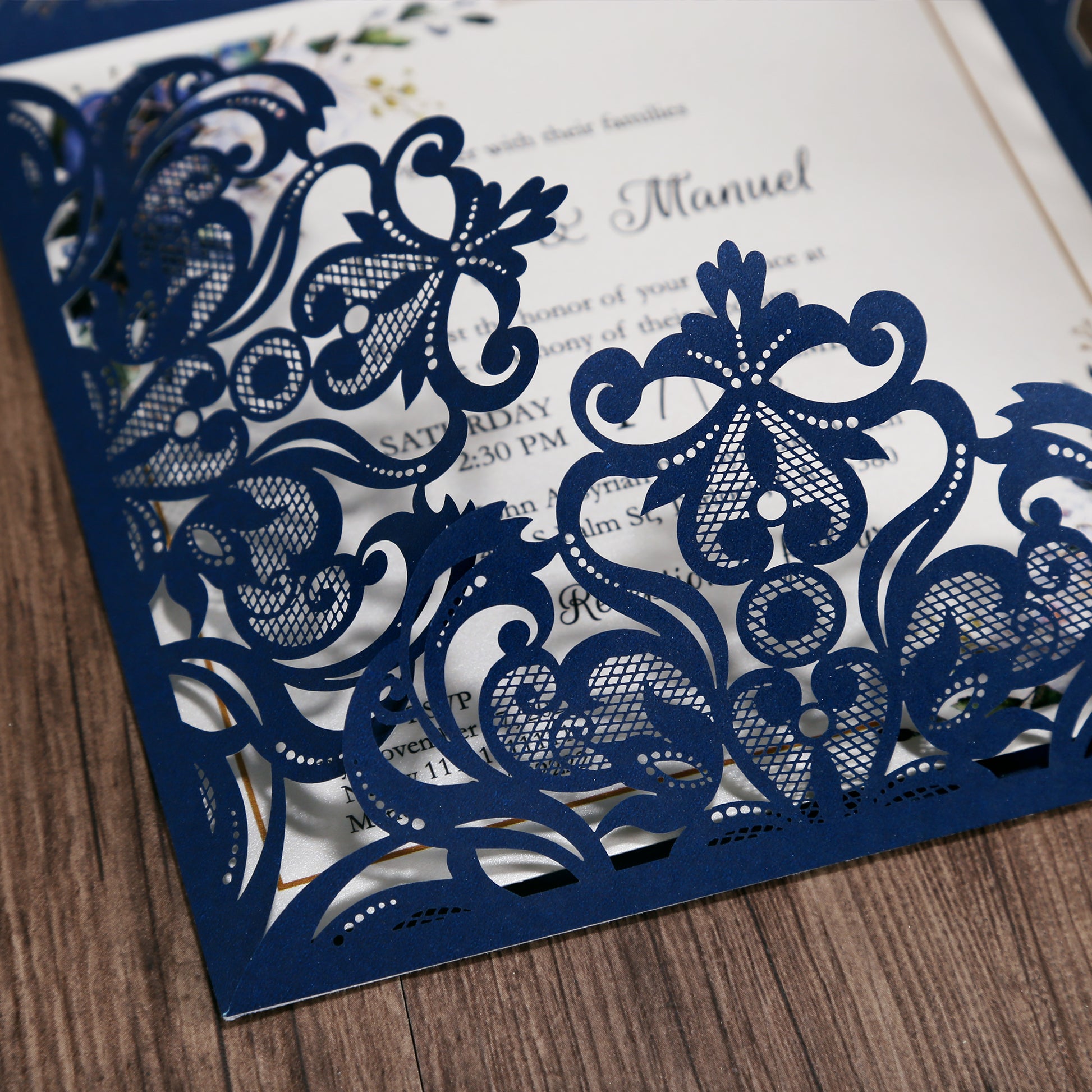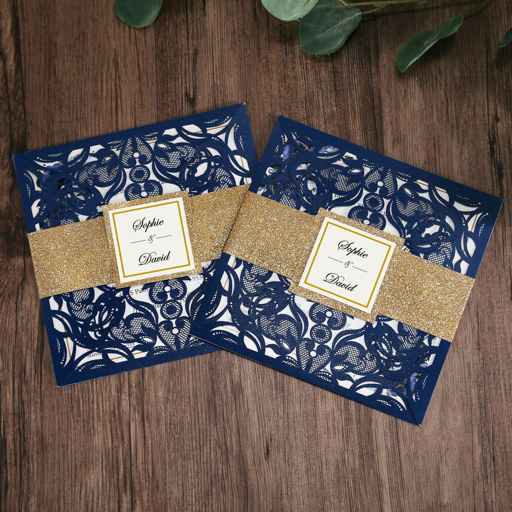 Square Blue Wedding Invitations for Wedding, Bridal Shower, Dinner, Party