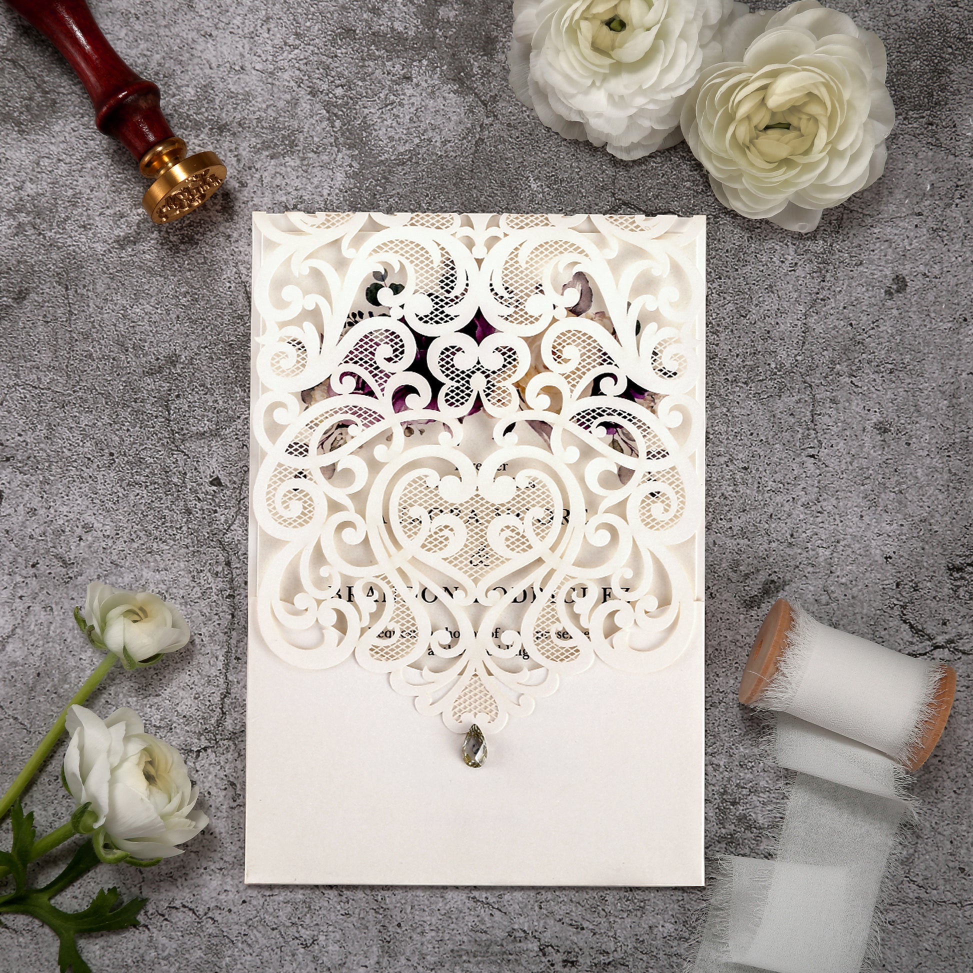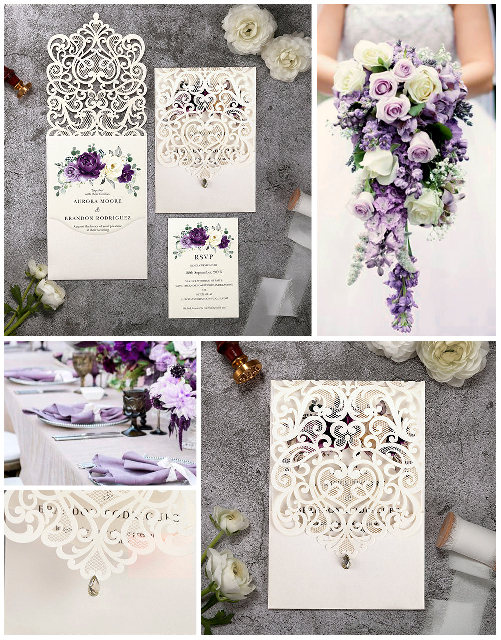 Vertical Purple Floral Laser cut invitations for Wedding Anniversary